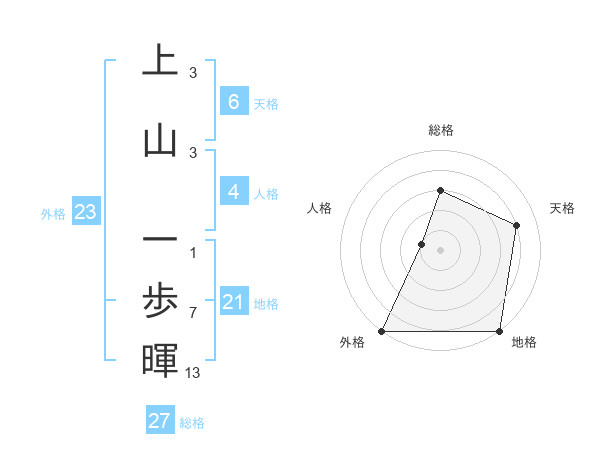 上山 一歩暉さんを姓名の画数から五運を鑑定