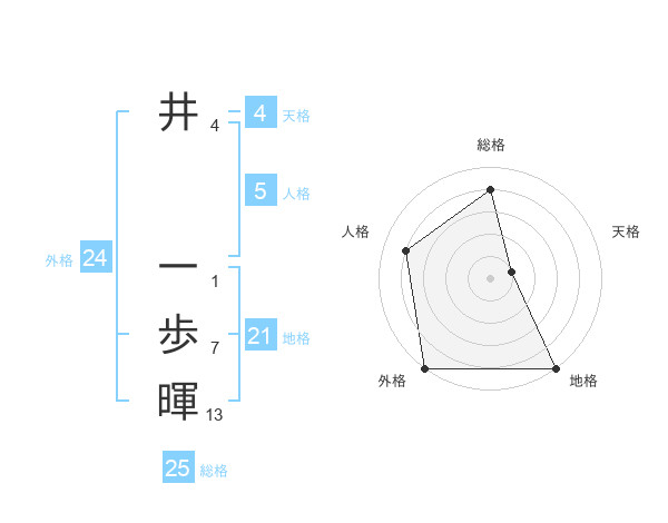 井 一歩暉さんの総格は25画の4点!