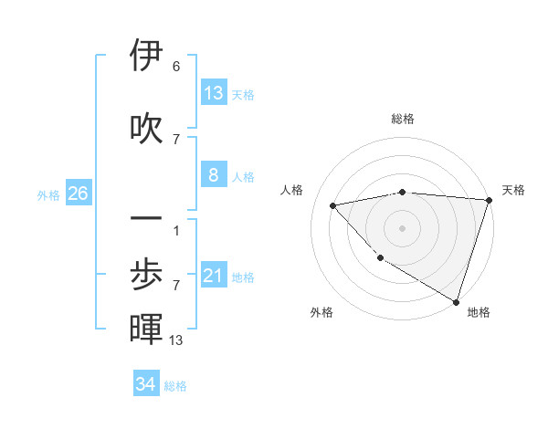 伊吹 一歩暉さんを姓名の画数から五運を鑑定