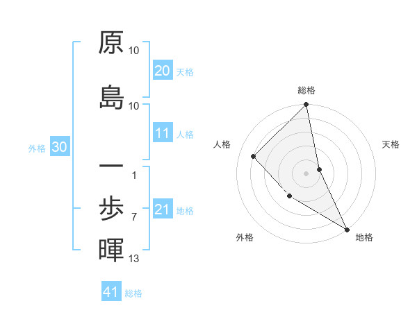 原島 一歩暉さんの総格は41画の5点!