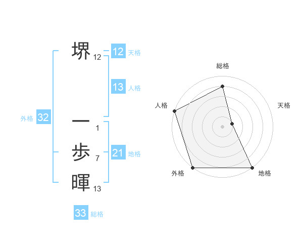 堺 一歩暉さんの総格は33画の4点!