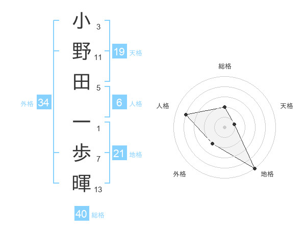 小野田 一歩暉さんを姓名の画数から五運を鑑定