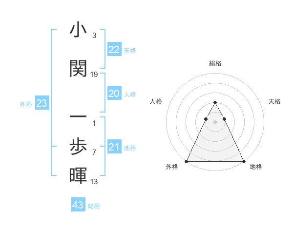 小関 一歩暉さんの総格は43画の2点