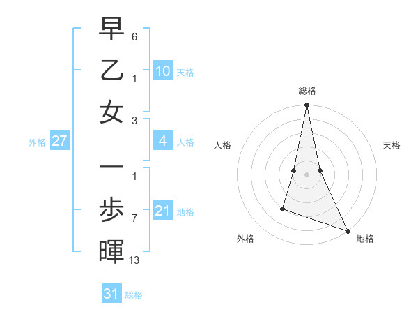 早乙女 一歩暉さんを姓名の画数から五運を鑑定
