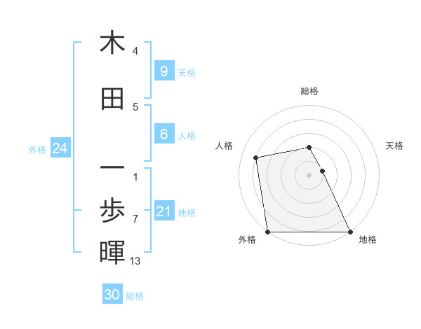木田 一歩暉さんを姓名の画数から五運を鑑定