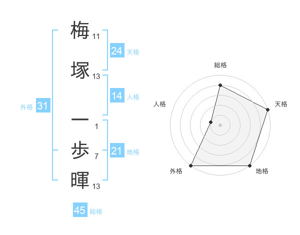 梅塚 一歩暉さんを姓名の画数から五運を鑑定