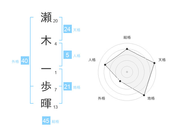 瀬木 一歩暉さんの地格は21画の5点!