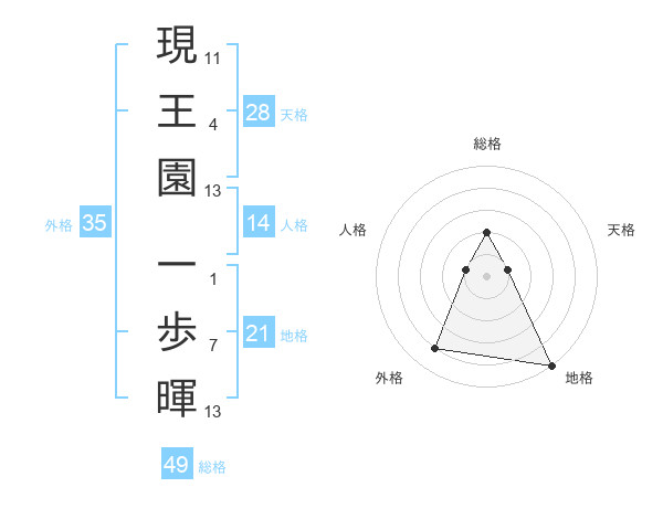 現王園 一歩暉さんを姓名の画数から五運を鑑定