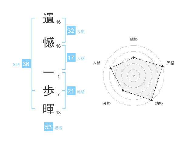 遺憾 一歩暉さんを姓名の画数から五運を鑑定