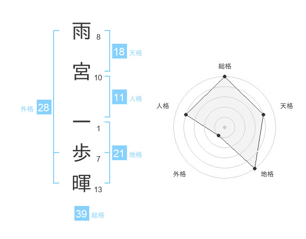 雨宮 一歩暉さんを姓名の画数から五運を鑑定