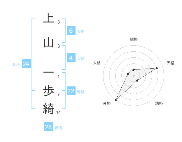上山 一歩綺さんの外格は24画の5点!