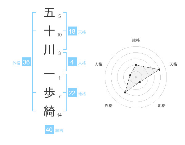 五十川 一歩綺さんを姓名の画数から五運を鑑定