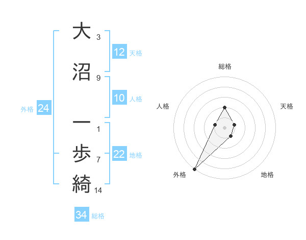 大沼 一歩綺さんを姓名の画数から五運を鑑定