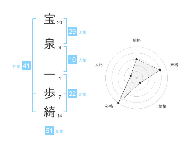 宝泉 一歩綺さんを姓名の画数から五運を鑑定