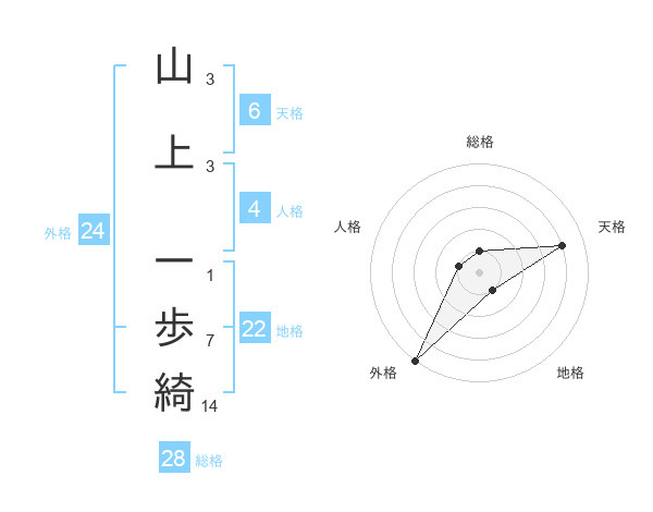 山上 一歩綺さんを姓名の画数から五運を鑑定