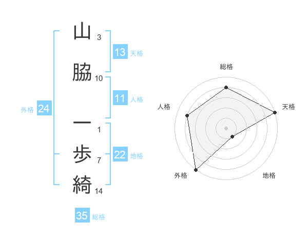 山脇 一歩綺さんを姓名の画数から五運を鑑定