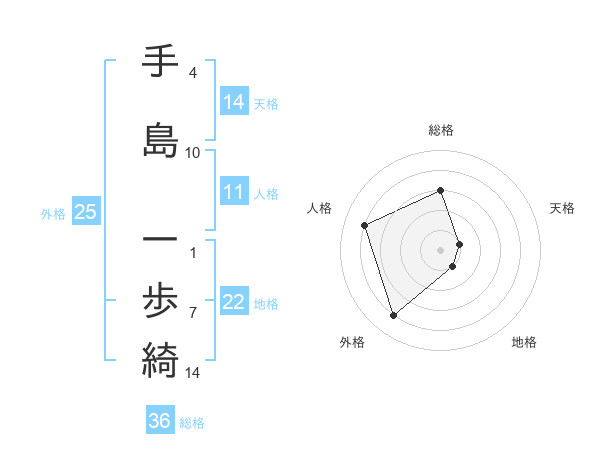 手島 一歩綺さんを姓名の画数から五運を鑑定