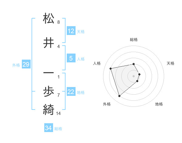 松井 一歩綺さんを姓名の画数から五運を鑑定