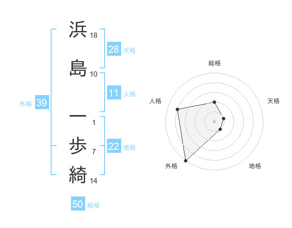 浜島 一歩綺さんの外格は39画の5点