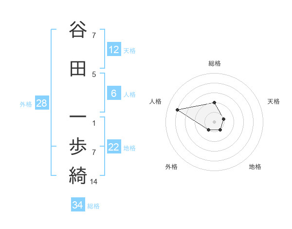谷田 一歩綺さんを姓名の画数から五運を鑑定