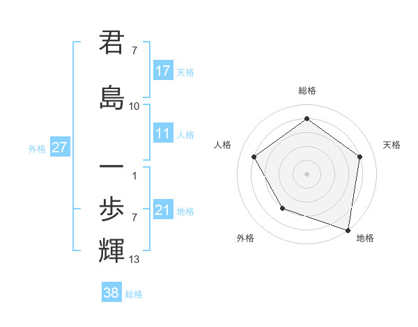 君島 一歩輝さんを姓名の画数から五運を鑑定