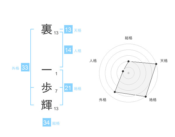 裏 一歩輝さんを姓名の画数から五運を鑑定