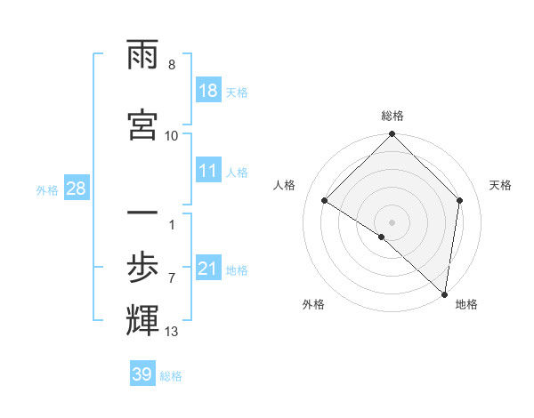 雨宮 一歩輝さんを姓名の画数から五運を鑑定