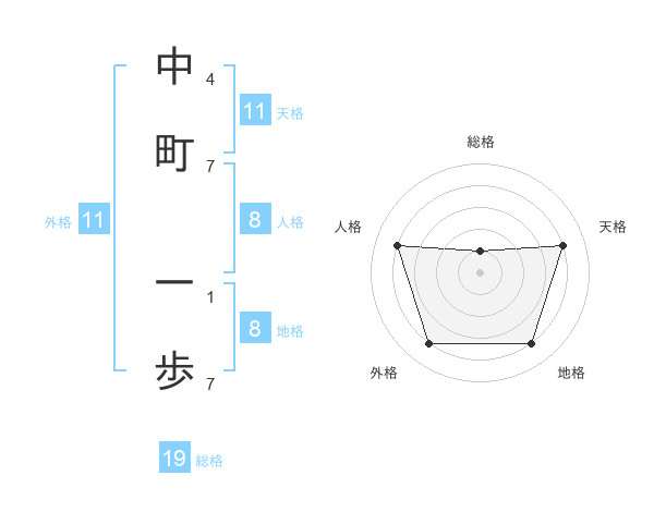 中町 一歩さんの地格は8画の4点!