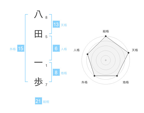 八田 一歩さんの総格は21画の5点!