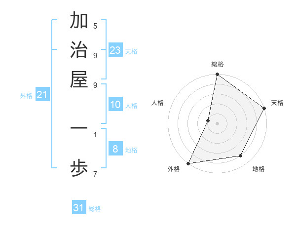 加治屋 一歩さんを姓名の画数から五運を鑑定