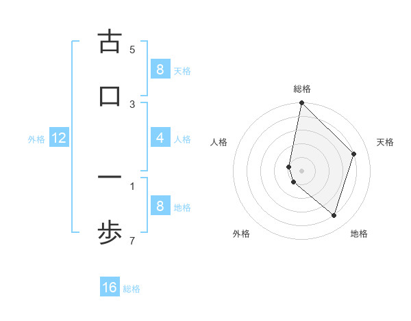 古口 一歩さんの天格は8画の4点!