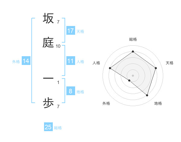 坂庭 一歩さんの天格は17画の4点!