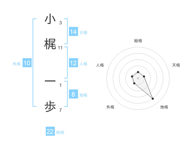 小梶 一歩さんを姓名の画数から五運を鑑定
