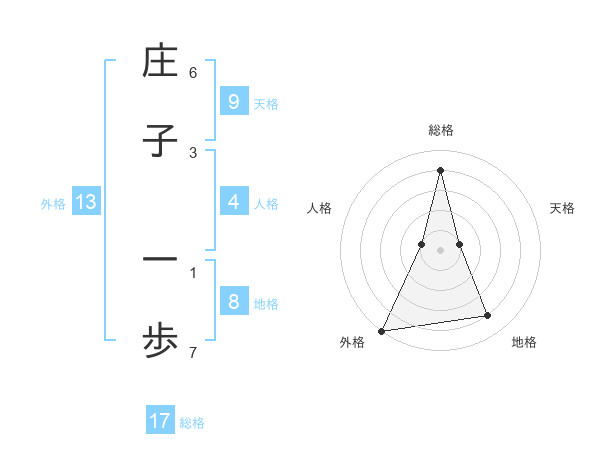 庄子 一歩さんの総格は17画の4点!