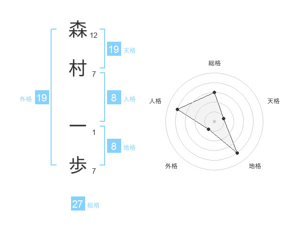 森村 一歩さんの総格は27画の3点!