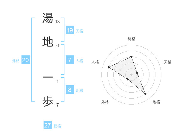 湯地 一歩さんの総格は27画の3点!