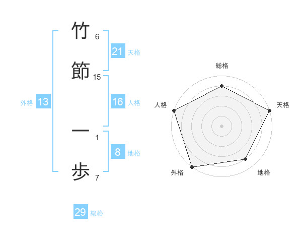 竹節 一歩さんを姓名の画数から五運を鑑定