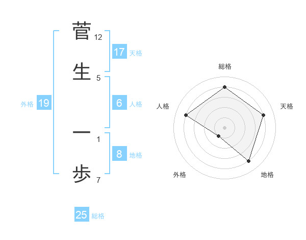 菅生 一歩さんの天格は17画の4点!