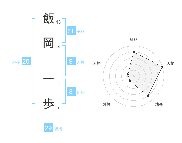 飯岡 一歩さんを姓名の画数から五運を鑑定