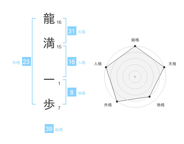 龍満 一歩さんを姓名の画数から五運を鑑定