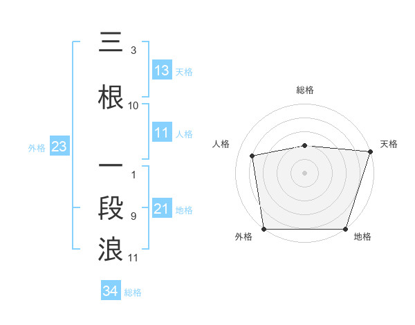 三根 一段浪さんを姓名の画数から五運を鑑定