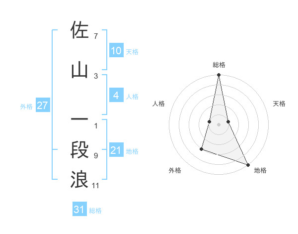 佐山 一段浪さんを姓名の画数から五運を鑑定