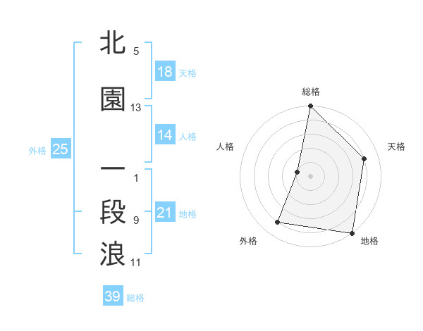 北園 一段浪さんの総格は39画の5点!