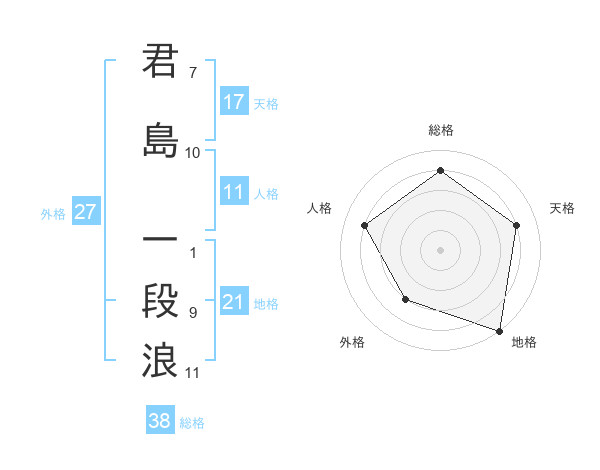 君島 一段浪さんの天格は17画の4点!