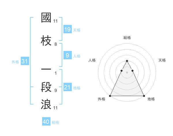 國枝 一段浪さんを姓名の画数から五運を鑑定