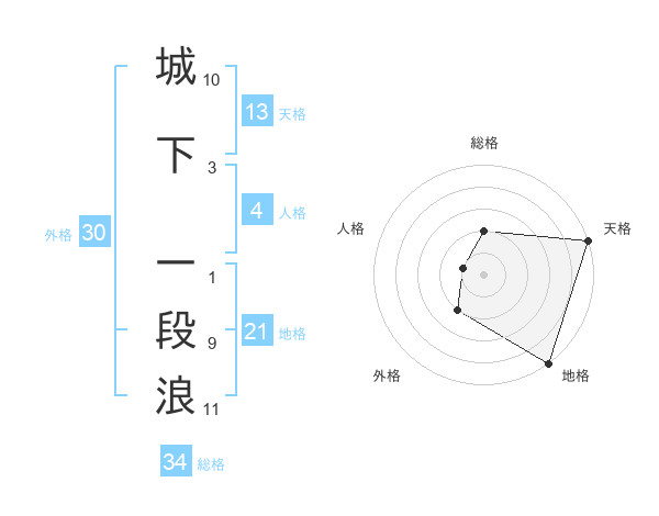 城下 一段浪さんを姓名の画数から五運を鑑定