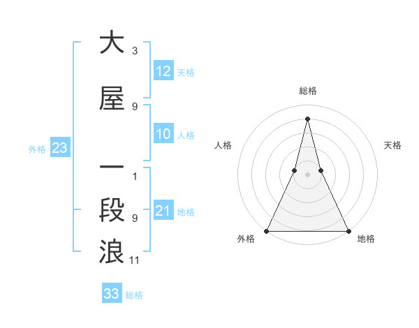 大屋 一段浪さんを姓名の画数から五運を鑑定