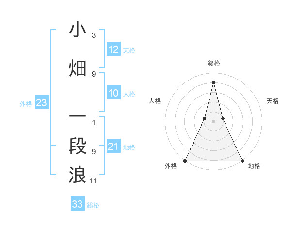 小畑 一段浪さんを姓名の画数から五運を鑑定