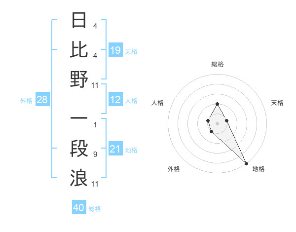 日比野 一段浪さんを姓名の画数から五運を鑑定