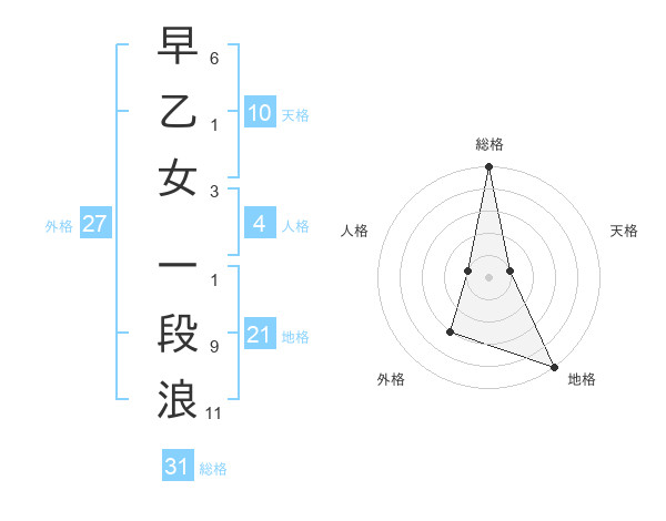 早乙女 一段浪さんを姓名の画数から五運を鑑定